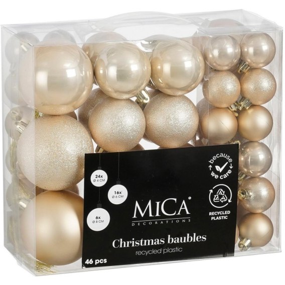 46 bombek w zestawie to odpowiednia ilość, aby pięknie udekorować średnią lub dużą choinkę.