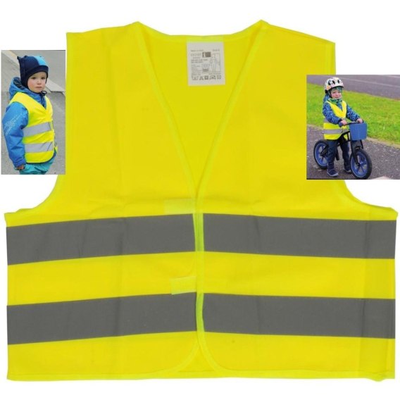 KAMIZELKA ODBLASKOWA DLA DZIECI ŻÓŁTA sprawi, że Twoje dziecko będzie dobrze widoczne z daleka, co zwiększy poziom jego bezpieczeństwa podczas powrotu ze szkoły podczas brzydkiej pogody, jazdy na jednośladzie po zmroku lub podczas awarii samochodu.